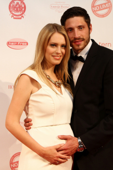 25042015 Frankfurt, Union-Halle Fashion Charity Gala zu Gunsten des RTL Spendenmarathons Fussballspieler Tim Kister (SV Sandhausen) mit seiner schwangeren Frau Topmodell Yvonne Schr?der-Kister *********** Foto: A2/Hartenfelser