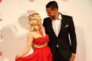 25042015 Frankfurt, Union-Halle Fashion Charity Gala zu Gunsten des RTL Spendenmarathons Giulia Siegel deutsches Model, Fernsehmoderatorin, DJane und Schauspielerin und Freund Frank Buechtmann
