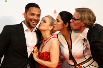 25042015 Frankfurt, Union-Halle Fashion Charity Gala zu Gunsten des RTL Spendenmarathons Moderatorin Jennifer Kn?ble, RTL Moderator Kena Amoa (RTL) Schauspielerin MARIELLA AHRENS *********** Foto: A2/Hartenfelser Unternehmer Jens Hilbert