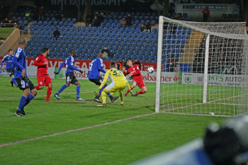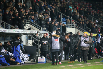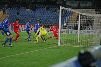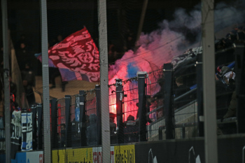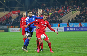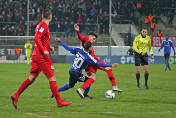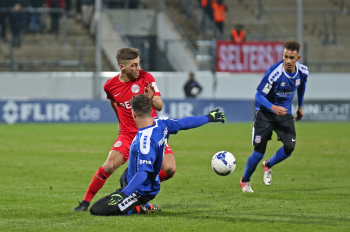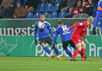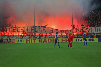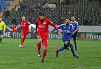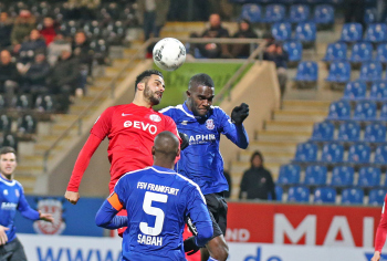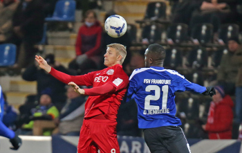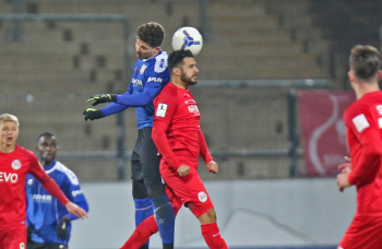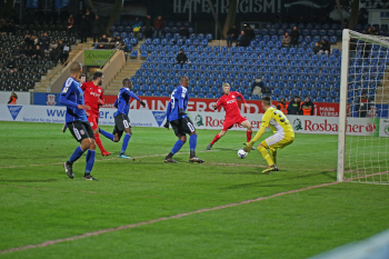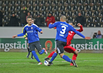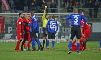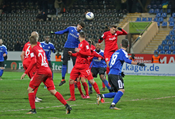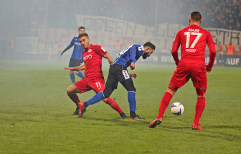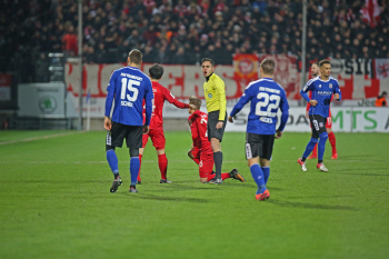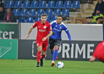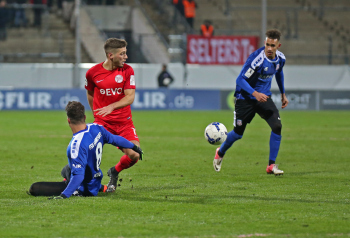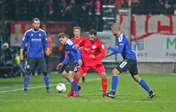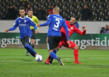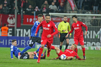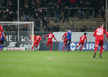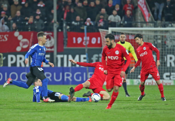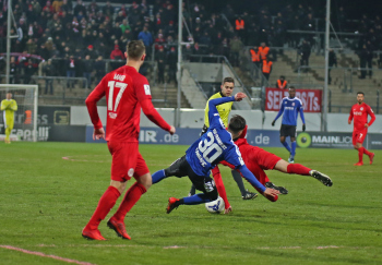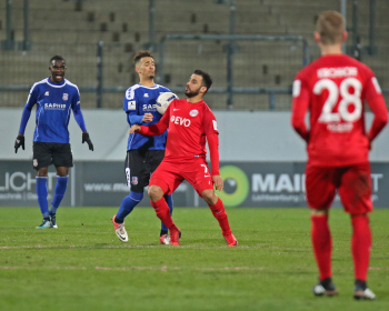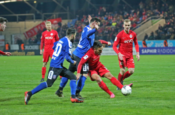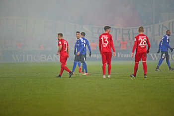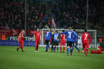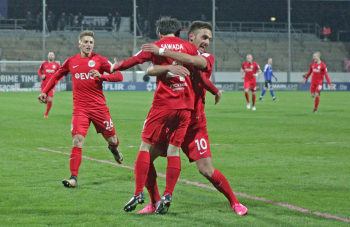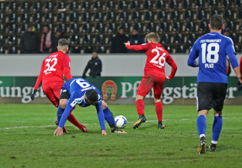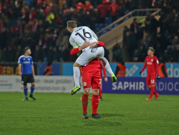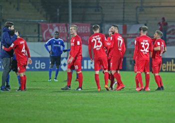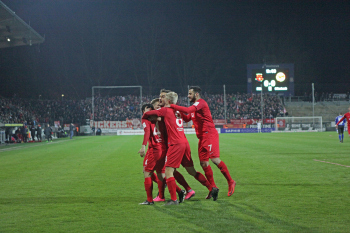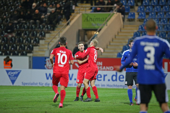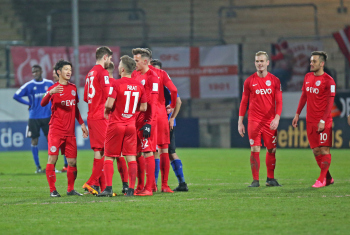 19.03.2018, xxx, Fussball Regionalliga Sued-West, FSV Frankfurt - Kickers Offenbach, emspor, v.l. Ko Sawada (Kickers Offenbach), Dennis Schulte (Kickers Offenbach), Serkan Firat (Kickers Offenbach), Francesco Lovric (Kickers Offenbach), Benjamin Kirchhoff (Kickers Offenbach), Dren Hodja (Kickers Offenbach), Freude und Jubel