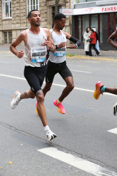 27.10.2024 xmgoodx Frankfurt am Main, mainova Frankfurt Marathon 2024 Topläufer Abdelaziz Merzougui ESP und Workneh Serbessa ETH ********* Foto: Peter Hartenfelser