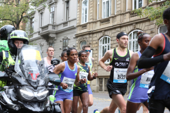 27.10.2024 xmgoodx Frankfurt am Main, mainova Frankfurt Marathon 2024 neben dem Motorrad Shuko Genemo ETH ********* Foto: Peter Hartenfelser