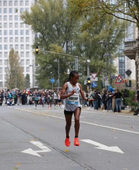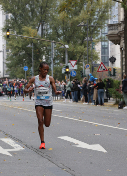 27.10.2024 xmgoodx Frankfurt am Main, mainova Frankfurt Marathon 2024 Läufer auf der Strecke Tadelech Nedi ETH ********* Foto: Peter Hartenfelser