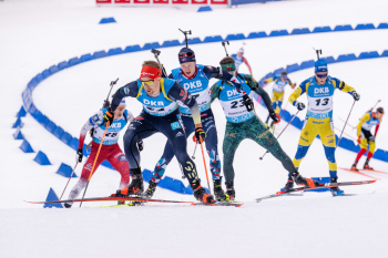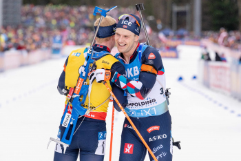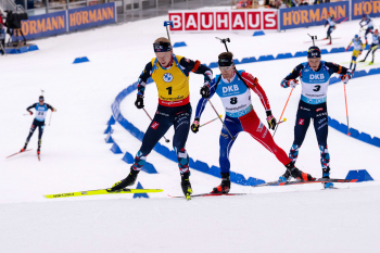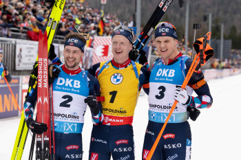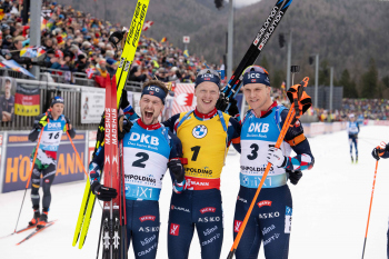 Norwegischer dreifach Erfolg, 3th Platz Sturla Holm Laegreid, 1th Platz Johannes Thingnes Boe und 2th Platz Vetle Sjaastad Christiansen (NOR).