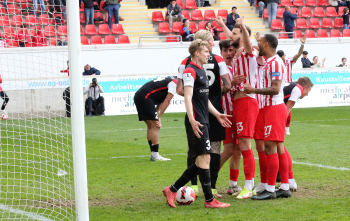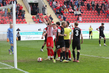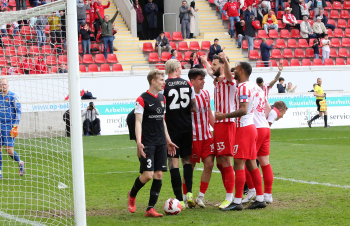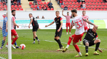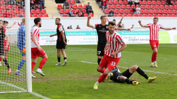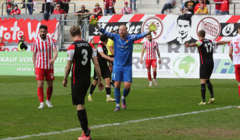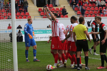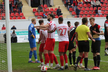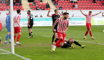 in der 91. Spielminute erzielt Dejan Bozic (33, OFC) das Tor zum 1:0 - Jubel beim OFC - Empörung bei den Spieler von Sonnenhof