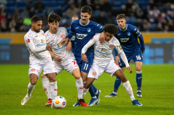 Silvan Dominic Widmer (1.FSV Mainz 05), Marius Bülter (TSG 1899 Hoffenheim), Aymen Barkok (1.FSV Mainz 05), Grischa Prömel und Kevin Vogt (TSG 1899 Hoffenheim).