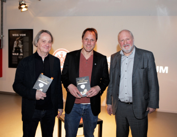 26.03.2019, xxx, Frankfurt am Main, Eintracht Frankfurt Museum, Buchvorstellung ?Alles ausser Sex? Societaets-Verlag; vl. Rainer Gefeller (Autor), Matthias Thoma (Museumsleiter Eintracht Frankfurt Museum), Werner D`Inka (Autor)