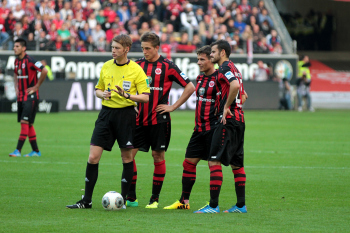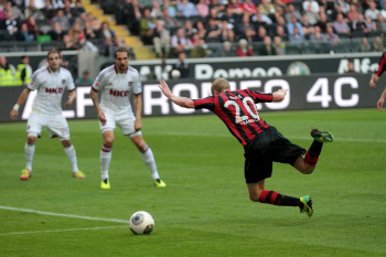 dahinter Bastian Oczipka, Stefano Celozzi, Tranquillo Barnetta(Eintracht Frankfurt)