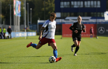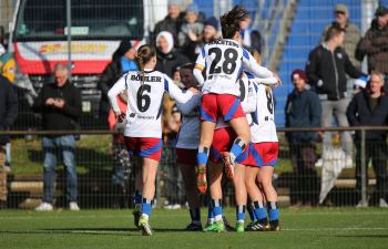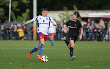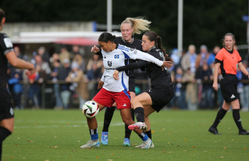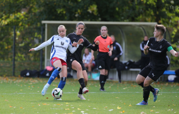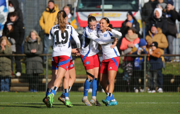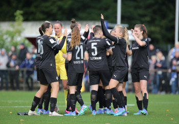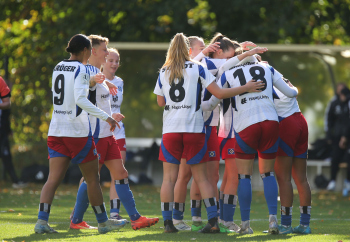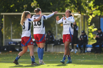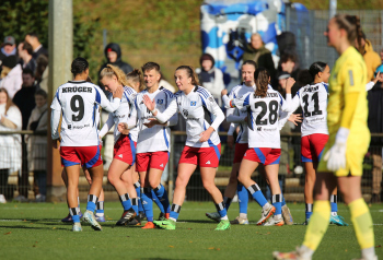 13.10.2024, xcex, GER, Hamburg, Trainingsplatz am Volksparkstadion, Frauenfussball, 2. Frauen-Bundesliga, Saison 2024/2025, Spieltag 7, HSV Frauen - Borussia Moenchengladbach, Torjubel HSV Frauen, Jubel, Freude, Emotionen, Goal celebration, Lisa Baum (HSV) bejubelt ihren Treffer mit den Teamkolleginnen
