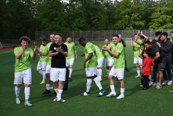 Die Spieler und Trainer Dejan Alempic (SV Pars Neu-Iseburg) feiern die Meisterschaft