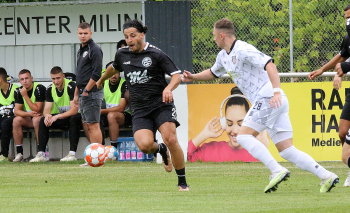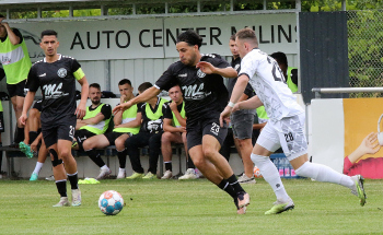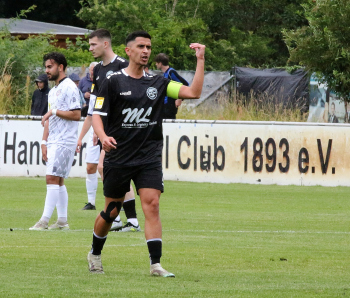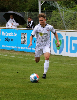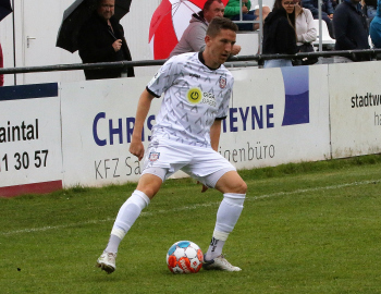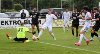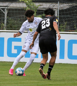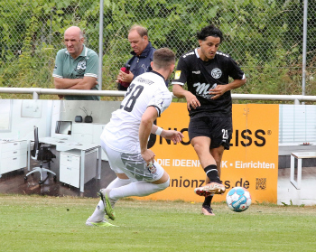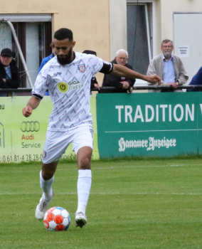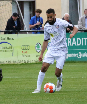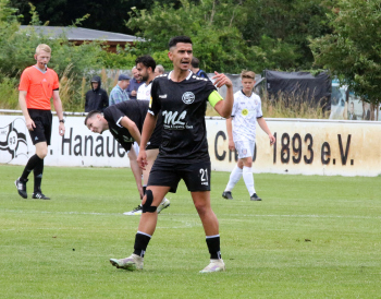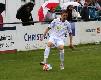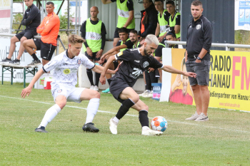 Lucas Hermes (28, FSV Frankfurt) gegen Torwart LEON JOSIPOVIC (24, Hanau)