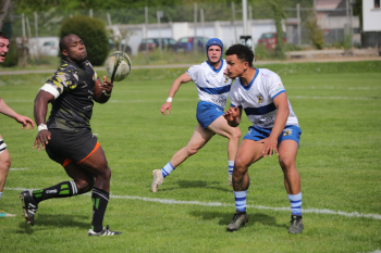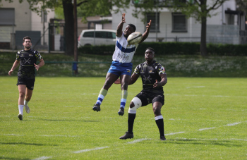 13.04.2024 Offenbach Rugby Bundesliga 2024 Offenbacher SCR 1 - TSV Handschuhsheim Sam Phiri (11, Offenbacher SCR 1) gegen Josuha Gando (10, Handschuhsheim) ***** Foto: A2Bildagentur Hartenfelser