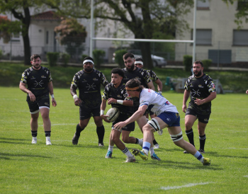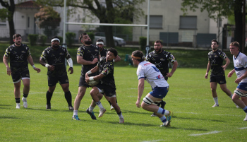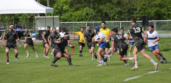 13.04.2024 Offenbach Rugby Bundesliga 2024 Offenbacher SCR 1 - TSV Handschuhsheim Vitolio Manukula, Nicolas Menguy, Tobi Apelt (Offenbacher SCR 1) gegen 10, TSV Handschuhsheim ***** Foto: A2Bildagentur Hartenfelser