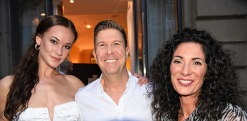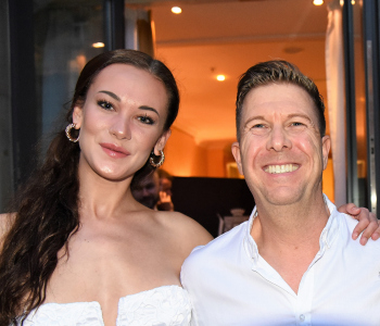 05.09.2022 Frankfurt am Main, Top-Magazin - Top Lounge im Frankfurter Hof Physiotherapeut Björn Reindl R2comSport mit Begeleitung und Moderatorin Evren Gezer mit Ehemann Armin Kuster emspor, ********* Foto: Peter Hartenfelser