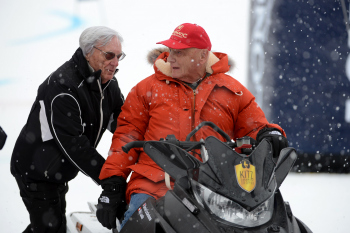 Dreamteam Mercedes-Teamaufseher Niki Lauda ist wie jedes Jahr der Fahrer von Formel-1-Boss Bernie Ecclestone Oesterreich, Kitzbuehel: Wintersport, Alpine: 75. Hahnenkammrennen - Kitz Charity Race 24.01.2015, Streif, Ganslern .