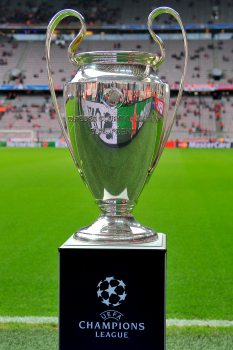 Der UEFA Championgs League Pokal. Deutschland, München: Sport, Fussball, UEFA Champions League Halbfinale: FC Bayern Muenchen vs. Atletico Madrid am 03.05.2016, Allianz-Arena. *** Quelle: Hartenfelser, hoehere Aufloesung auf Anfrage, Verwendung honorarpflichtig, Belegexemplar erbeten Kontonummer 112051570 BLZ 50550020 Umsatzsteuernummer 04482501147