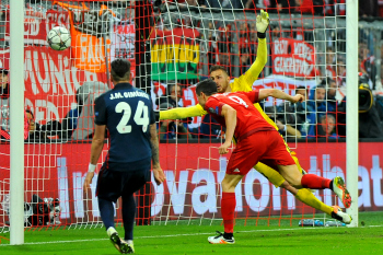 Robert LEWANDOWSKI (FC Bayern Muenchen) erzielt das 2:1, Torwart Jan OBLAK (Atletico Madrid). Deutschland, München: Sport, Fussball, UEFA Champions League Halbfinale: FC Bayern Muenchen vs. Atletico Madrid am 03.05.2016, Allianz-Arena. *** Quelle: Hartenfelser, hoehere Aufloesung auf Anfrage, Verwendung honorarpflichtig, Belegexemplar erbeten Kontonummer 112051570 BLZ 50550020 Umsatzsteuernummer 04482501147