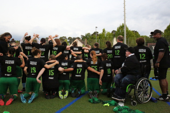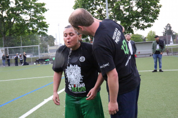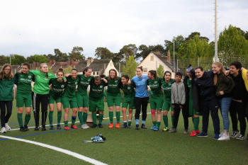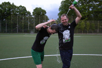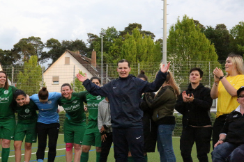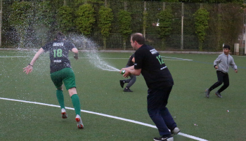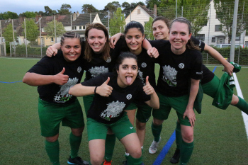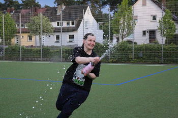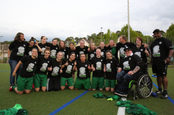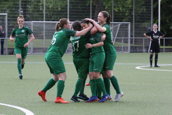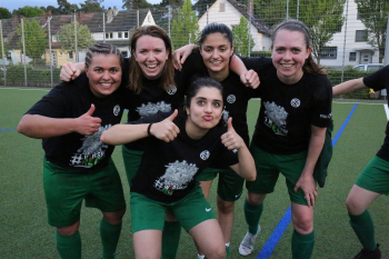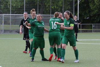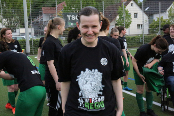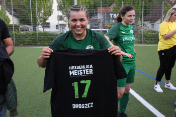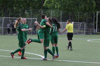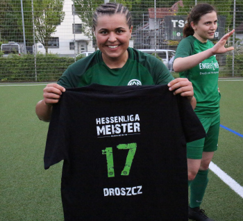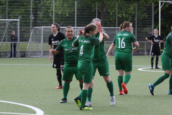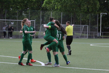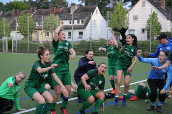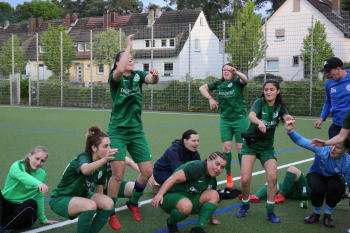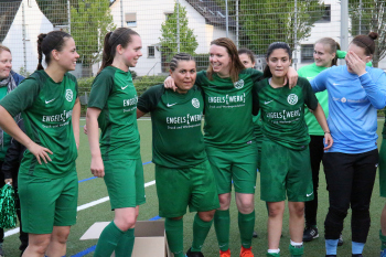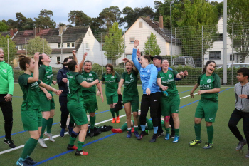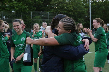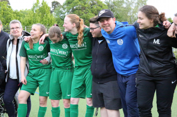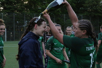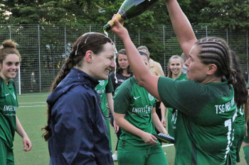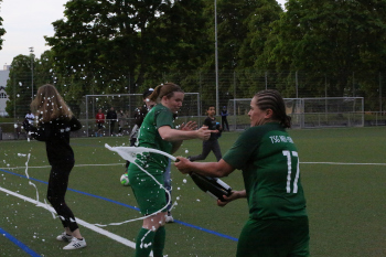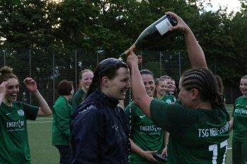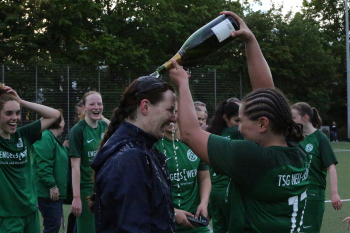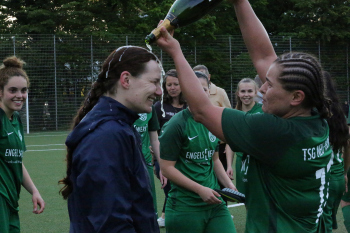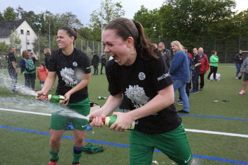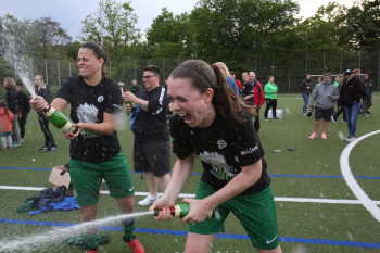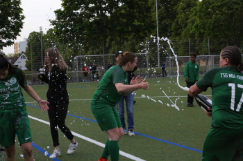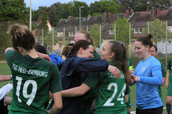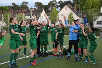 die Frauen der TSG Neu-Isenburg feiern ausgelassen die Meisterschaft in der Hessenliga
