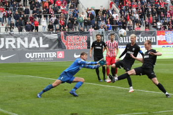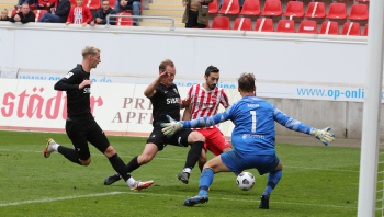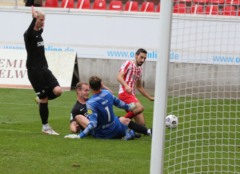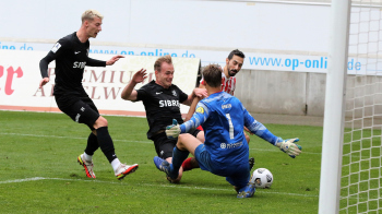 Rafael Garcia (7, OFC) Tor zum 4:0, Torwart Eike bansen und Henri Weigelt (Steinbach) kommen zu spät