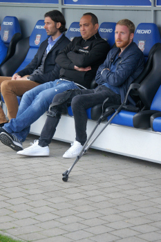 Resigniert? Roland Benschneider. Sportdirektor, Teammanager Mikayil Kabaca, der verletzte Kapit?n Patrick Ochs (FSV Frankfurt)