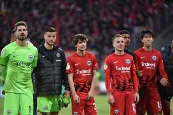 Torwart Kevin Trapp (1, Eintracht Frankfurt), Torwart Diant Ramaj (40, Eintracht Frankfurt), Paxten Aaronson (30, Eintracht Frankfurt), Mario Götze (27, Eintracht Frankfurt)Daichi Kamada (15, Eintracht Frankfurt)
