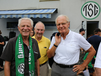 18.08.2019, xmgoodx Neu-Is, enburg Frauen Regionlliga Süd Saison 2019/2020 TSG Neu-Isenburg - Eintracht Frankfurt TSG Vorstand Karl-Heinz Groh und Rudi Baro.mit Bürgermeister Herbert Hunkel ****** Foto: Peter Hartenfelser