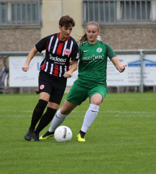 18.08.2019, xmgoodx Neu-Isenburg Frauen Regionlliga Süd Saison 2019/2020 TSG Neu-Isenburg - Eintracht Frankfurt Sabrina Frank (TSG Neu-Isenburg) gegen Kaho Fushiki ( Eintracht Frankfurt) ****** Foto: Peter Hartenfelser