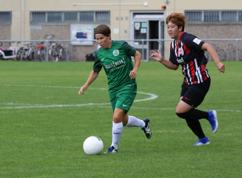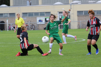 18.08.2019, xmgoodx Neu-Isenburg Frauen Regionlliga Süd Saison 2019/2020 TSG Neu-Isenburg - Eintracht Frankfurt Damla Bulut (TSG Neu-Isenburg) gegen Nina Neumann ( Eintracht Frankfurt) ****** Foto: Peter Hartenfelser