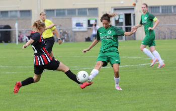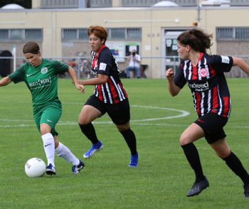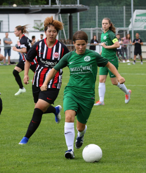 18.08.2019, xmgoodx Neu-Isenburg Frauen Regionlliga Süd Saison 2019/2020 TSG Neu-Isenburg - Eintracht Frankfurt Meike Weber (TSG Neu-Isenburg) gegen Kaho Fushiki ( Eintracht Frankfurt) ****** Foto: Peter Hartenfelser
