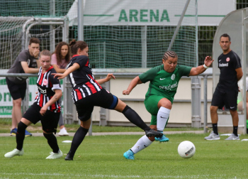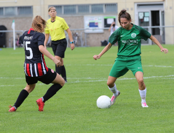18.08.2019, xmgoodx Neu-Isenburg Frauen Regionlliga Süd Saison 2019/2020 TSG Neu-Isenburg - Eintracht Frankfurt Sabrina Frank (TSG Neu-Isenburg) gegen Nina Neumann ( Eintracht Frankfurt) ****** Foto: Peter Hartenfelser