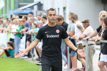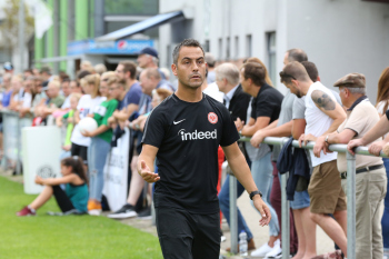 18.08.2019, xmgoodx Neu-Isenburg Frauen Regionlliga Süd Saison 2019/2020 TSG Neu-Isenburg - Eintracht Frankfurt Trainer Christian Yarussi ( Eintracht Frankfurt) ****** Foto: Peter Hartenfelser