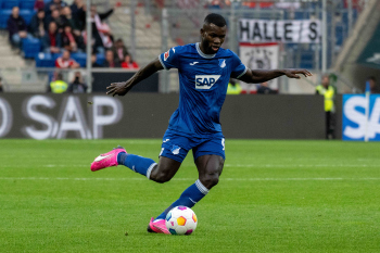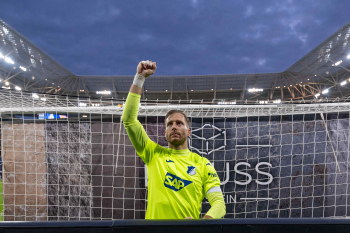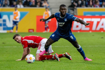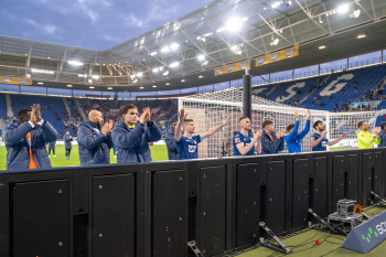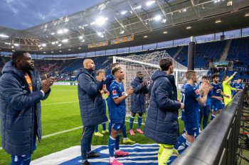 Die Hoffenheimer Spieler bei Ihren Fans, u.a. John Anthony Brooks, Ihlas Bebou, Andrej Kramaric, Ozan Kabak, Torwart Oliver Baumann und Maximilian Beier (TSG 1899 Hoffenheim).