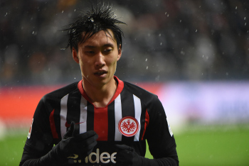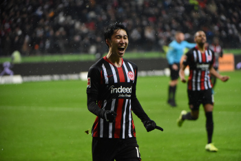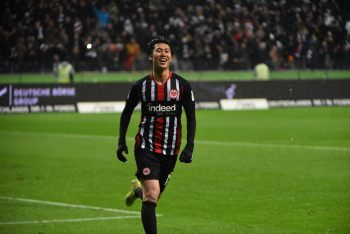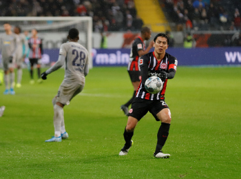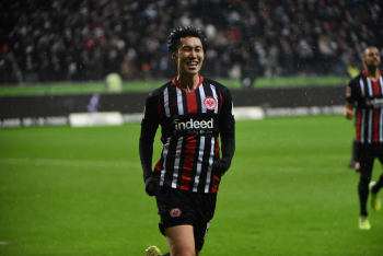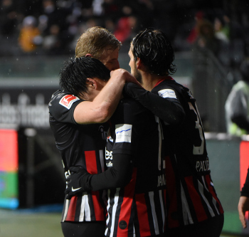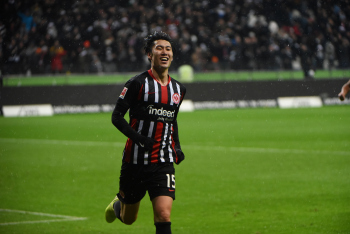 Kamada, Daichi (15, Eintracht Frankfurt) jubelt über den Ausgleichtreffer, das Tor wird jedoch nicht gegeben