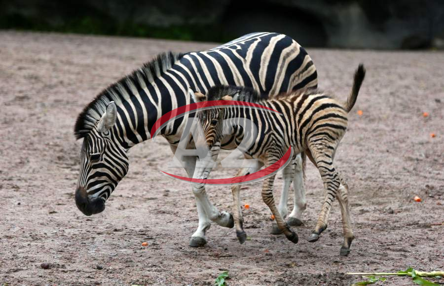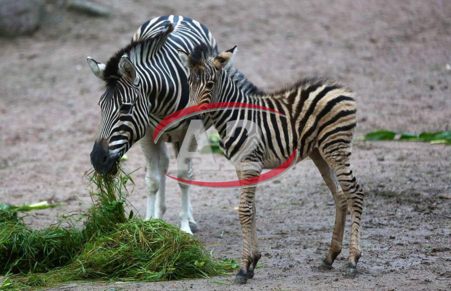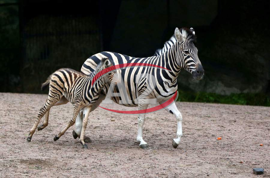 18.09.2025, xcex, GER, Hamburg, Tierpark Hagenbeck, Zoo, Tiere, Fauna, Jungtiere im Tierpark Hagenbeck, Chapman-Zebra Hengst Nachwuchs "Taio" zwei Wochen altes Jungtier auf der Aussananlage mit dem Muttertier ********* Foto: Peter Hartenfelser