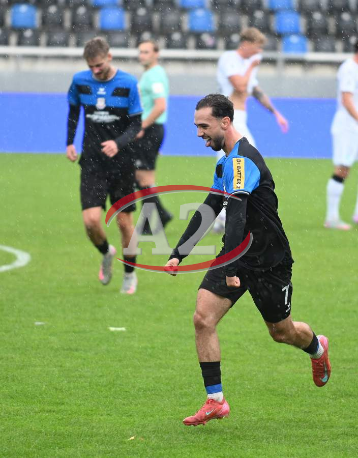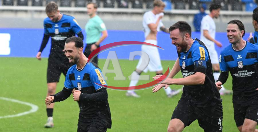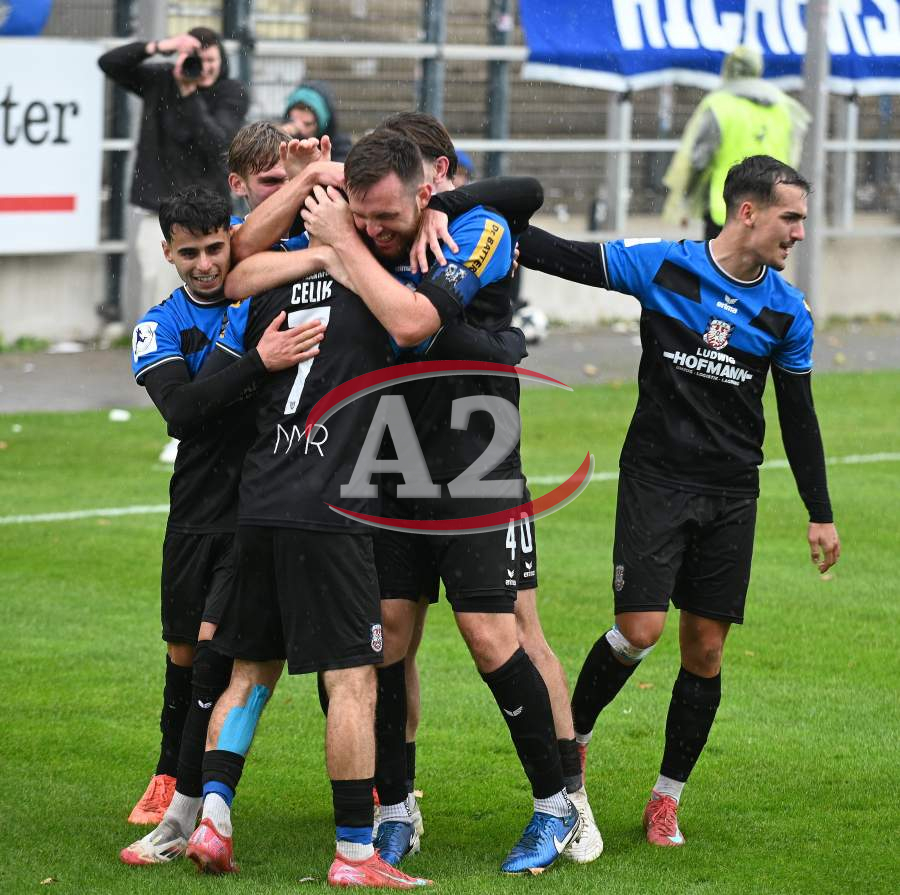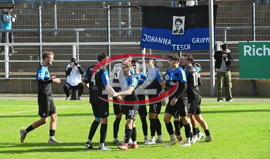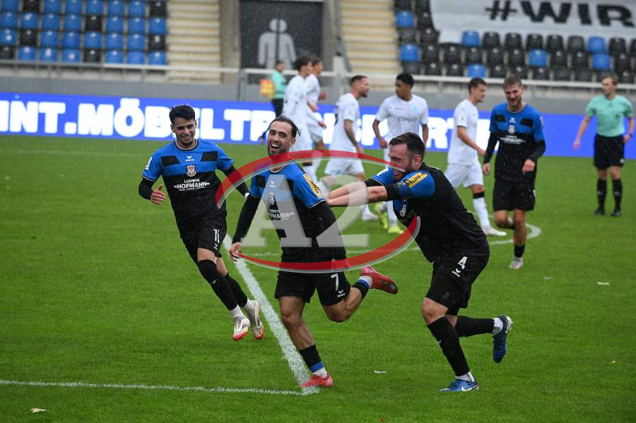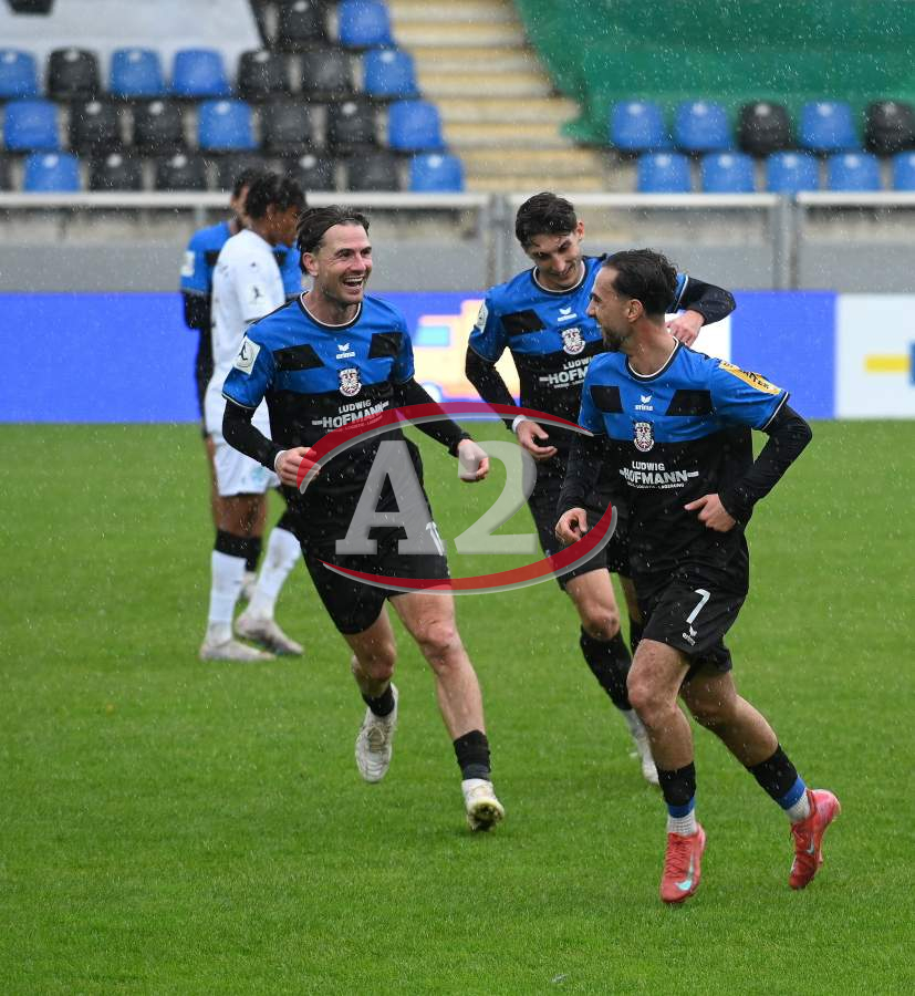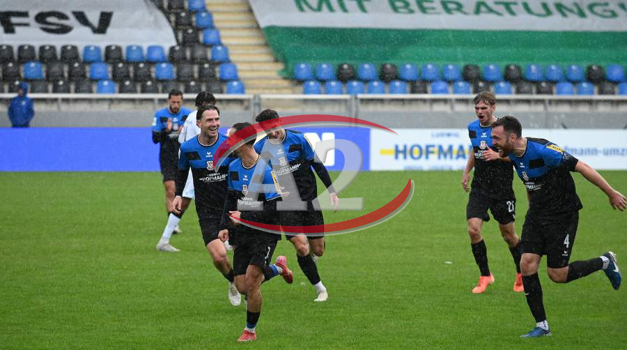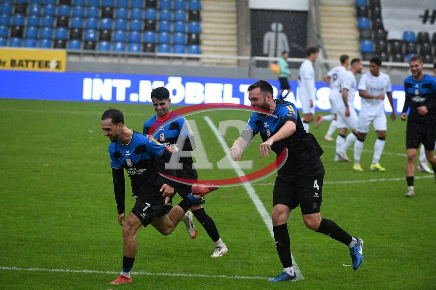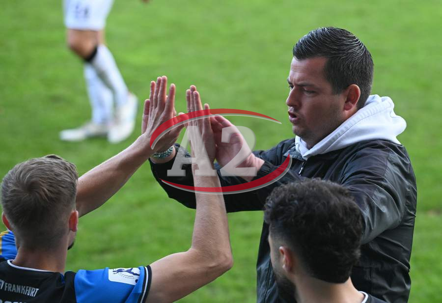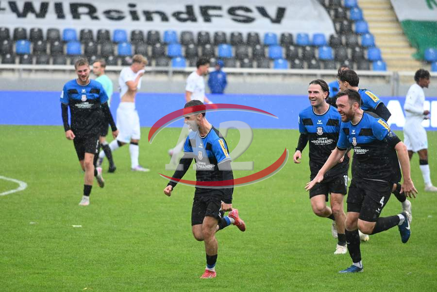 Nico Fundel (Stuttgarter Kickers) am Boden, Cas Peters (10, FSV Frankfurt), GIORGIO DEL VECCHIO (8, FSV Frankfurt), Ismail Harnafi (11, FSV Frankfurt)