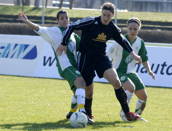 04.03.2007, Saison 2006/07, 1. FFC Frankfurt vs VfL Wolfsburg, Birgit Prinz vs Cristiane Pezzato