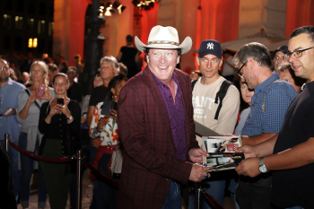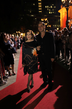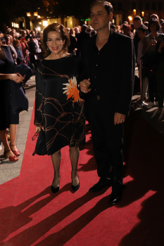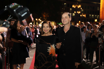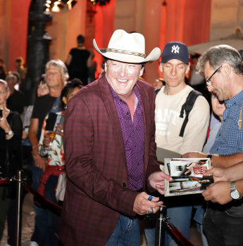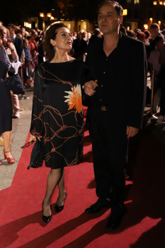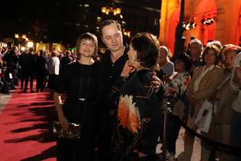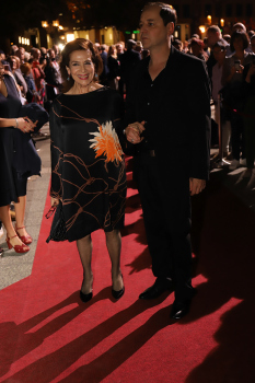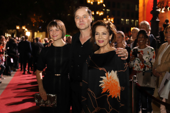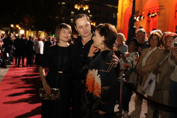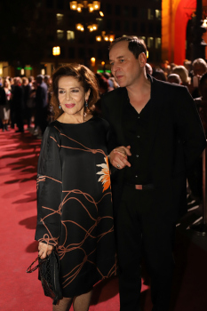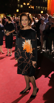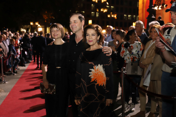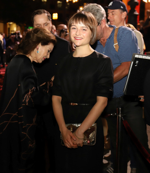 im Hintergrund gibt Hannelore Elsner eine der größten Schauspielerinnen Deutschlands Autogramme, davor Schauspielerin Lena Urzendowsky