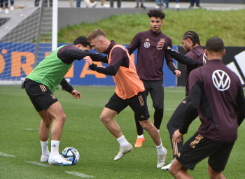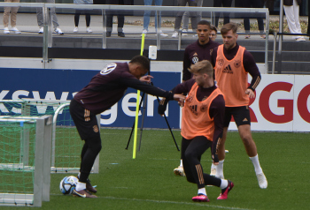21.03.2023 Frankfurt am Main, DFB-Campus DFB A-Nationalmannschaft der Männer Training u.a. David Raum, Mario Götze, Serge Gnabry ********* Foto: Peter Hartenfelser