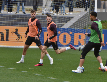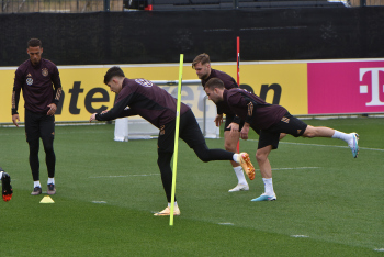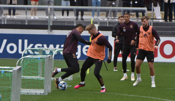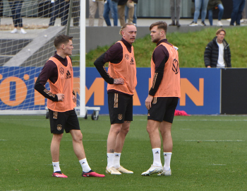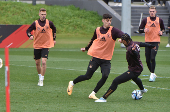 21.03.2023 Frankfurt am Main, DFB-Campus DFB A-Nationalmannschaft der Männer Training Joshua Kimmich , Niclas Füllkrug , Felix Nmecha (GER) ********* Foto: Peter Hartenfelser