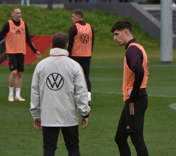 21.03.2023 Frankfurt am Main, DFB-Campus DFB A-Nationalmannschaft der Männer Training Bundetrainer Hansi Flick mit Kai Havertz (GER) ********* Foto: Peter Hartenfelser
