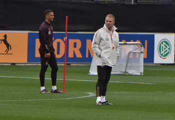 21.03.2023 Frankfurt am Main, DFB-Campus DFB A-Nationalmannschaft der Männer Training Thilo Kehrer (GER), Bundetrainer Hansi Flick ********* Foto: Peter Hartenfelser