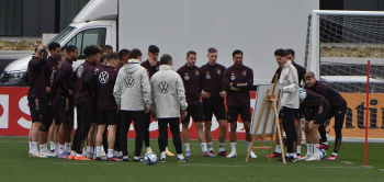 21.03.2023 Frankfurt am Main, DFB-Campus DFB A-Nationalmannschaft der Männer Training Die Spieler scharen sich um die Taktiktafel ********* Foto: Peter Hartenfelser