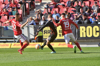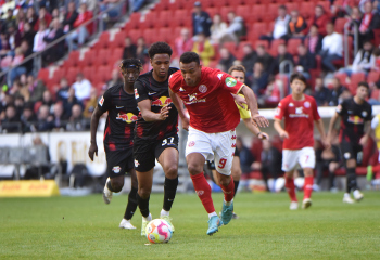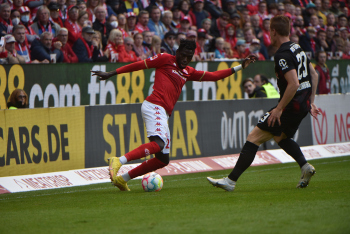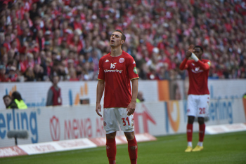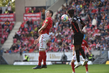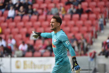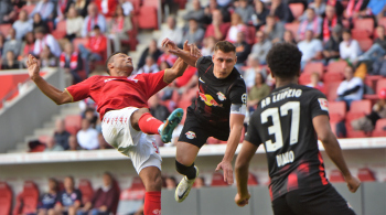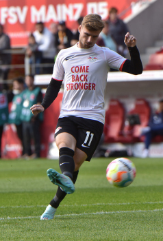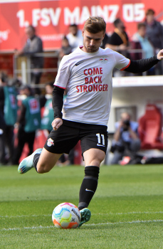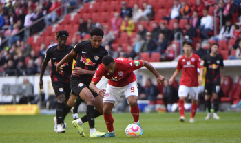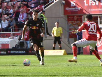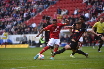 Timo Werner (11, RB Leipzig) gegen Alexander Hack (42, 1. FSV Mainz 05) und Antony Gordillo Cachi (19, 1. FSV Mainz 05)