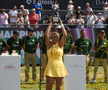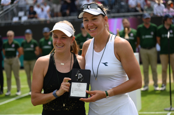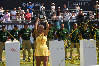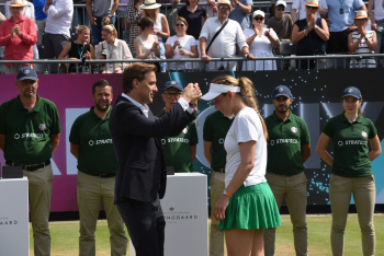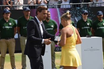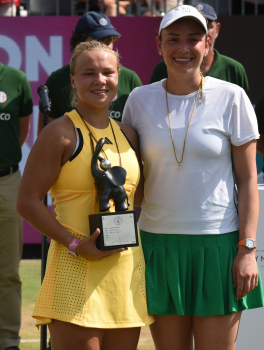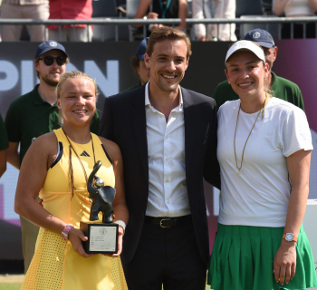 Bild zeigt Turnierdirektor, Aljoscha Thron mit der Siegerin der Bad Homburg Open 2024 - Diana Schneider