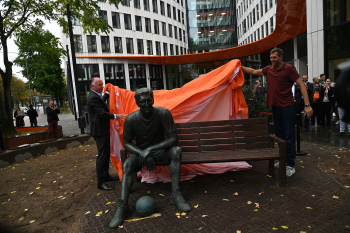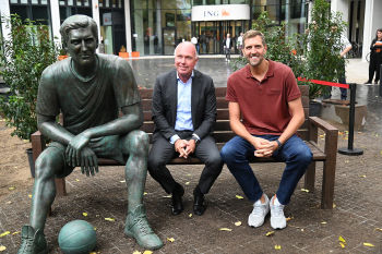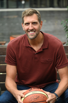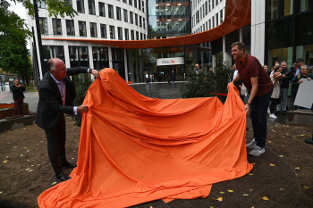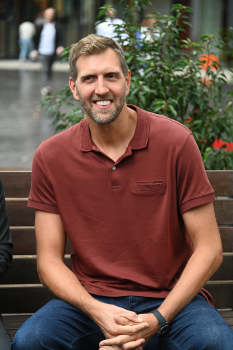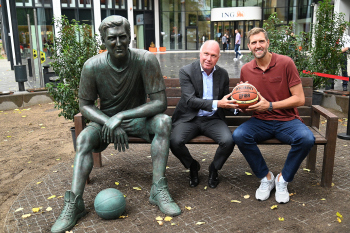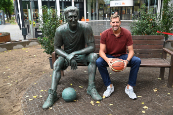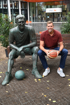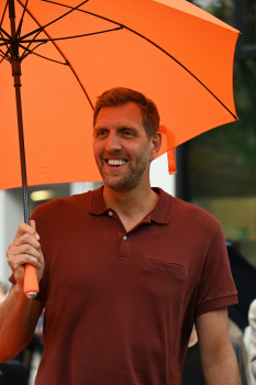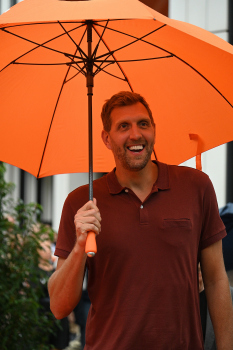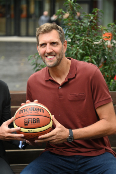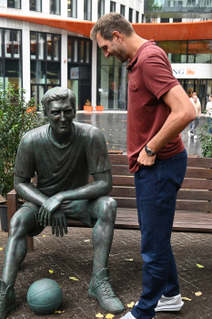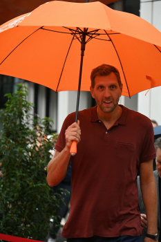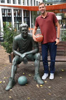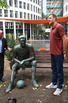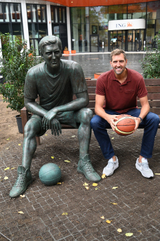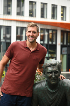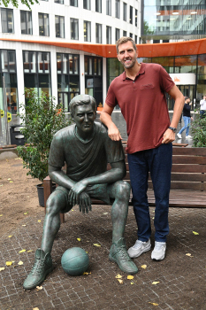 Enthüllung Dirk Nowitzki-Statue vor dem ING-Gebäude in Frankfurt