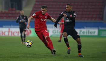 09.03.2018 xcex Deutschland, Offenbach, Fussball Regionalliga Südwest Saison 2017/2018 Kickers Offenbach - 1. FSV Mainz 05 II Florian Treske (OFC) gegen Jayson Breitenbach (Mainz) ***** Foto: A2/Hartenfelser