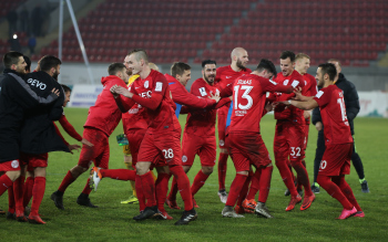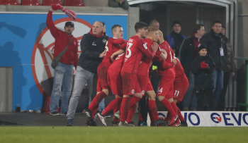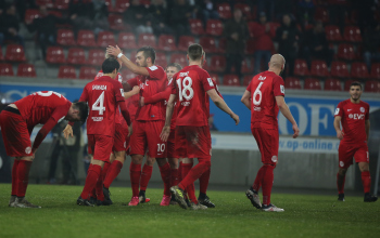 09.03.2018 xcex Deutschland, Offenbach, Fussball Regionalliga Südwest Saison 2017/2018 Kickers Offenbach - 1. FSV Mainz 05 II die Spieler von Kickers Offenbach feiern den Sieg ***** Foto: A2/Hartenfelser
