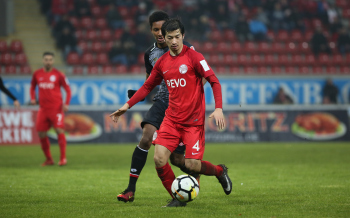 09.03.2018 xcex Deutschland, Offenbach, Fussball Regionalliga Südwest Saison 2017/2018 Kickers Offenbach - 1. FSV Mainz 05 II Ko Sawada (OFC) vor Charmaine Häusl (Mainz) ***** Foto: A2/Hartenfelser