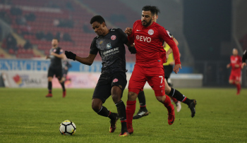 09.03.2018 xcex Deutschland, Offenbach, Fussball Regionalliga Südwest Saison 2017/2018 Kickers Offenbach - 1. FSV Mainz 05 II Charmaine Häusl (Mainz) gegen Varol Akgöz (OFC) ***** Foto: A2/Hartenfelser