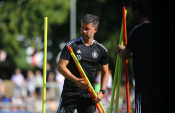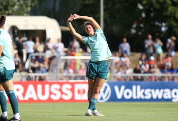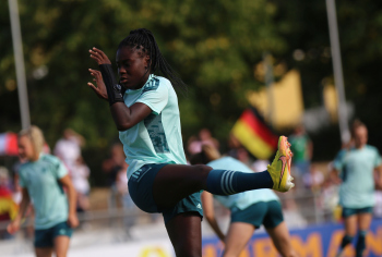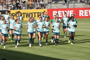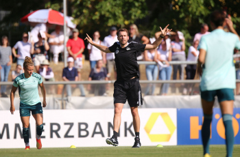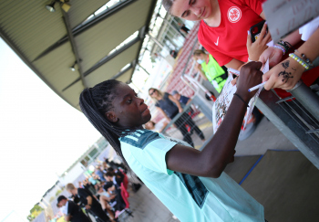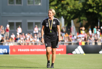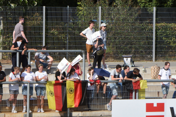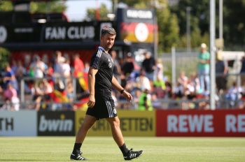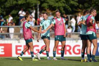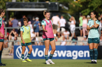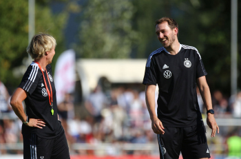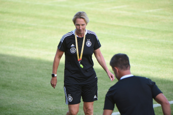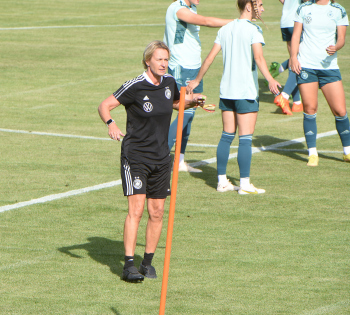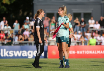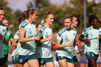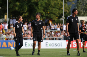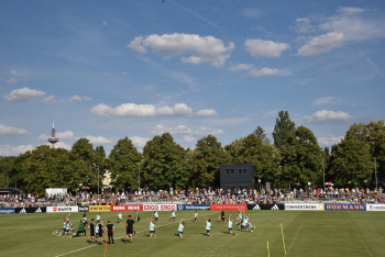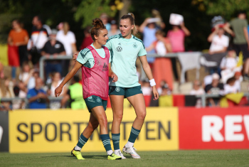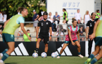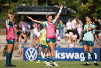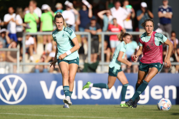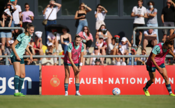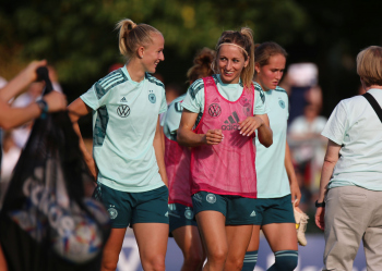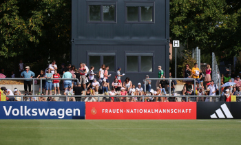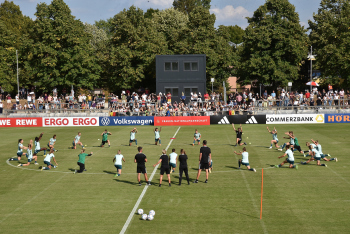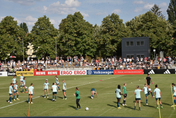 30.08.2022, xcex, GER, Frankfurt am Main, Stadion am Brentanobad, Frauenfussball, Saison 2022/2023, DFB Frauen Nationalmannschaft Training, erstes oeffentliches Training nach der Europameisterschaft, Bande, Banner, Aufsteller, Sponsoren, Volkswagen, VW, Adidas